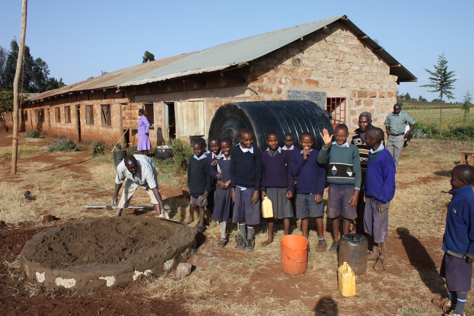 This week we wrapped up the nursery parent sessions at the schools: Kamaketha, Ruuju, and two at Kinyenjere. Kamaketha went very well the parents really enjoyed it and Henry (the school’s Headmaster) was so pleased to have us talk to the parents. He wanted us to mention that they are so grateful for all the help Farmers Helping Farmers has given them and they could not have made such a fast improvement in the community without the help from the people of Prince Edward Island. We were very pleased that he has already arranged a meeting with the parents of the school to talk about nutrition and is getting the nursery parents to teach. This is how our message can be passed within the community and hopefully the families can make best during the drought they are experiencing. Further relief came today for the children at the school from the generosity of Farmers Helping Farmers when a shipment of food was delivered so the children will have nutritious meals throughout the rest of the school semester. At Ruuju School we experienced unusually low numbers of parents in attendance due to the community’s bean harvest. The session was still positive however with the parents who were very interested and asked many questions on how to improve nutrition for their families. Our two sessions at Kinyenjere were our largest to date as there are a total of seventy one nursery children at the school. These parents showed a high interest in our presentation and loved the food prepared by our Champ parents. They especially enjoyed learning about chapattis and how pumpkin and carrots can be added into the recipe to increase beta-carotene levels. They insisted we come back to teach them more which we hope we can do if time allows in the near future. On our way home we were pleased to see workers installing a new water tank at Kieni-kia-Ndege, which is one of the newer schools being assisted by Farmers Helping Farmers (picture above). They were so pleased with the arrival and even the school children were helping to mix the cement to prepare the foundation. Both the Headmaster and the School Chairman were present and expressed their thanks and gratitude to everyone who made this possible for them and that they will put it to good use. Overall this week alone showed how much can be done in a short time frame while giving the people in the community skills and resources that will help create sustainable development for many years to follow. We will now reflect on our work over the past few weeks and begin our transition to prepare for home visits to assess food security in the area and also prepare for the arrival of four of our fellow UPEI students.